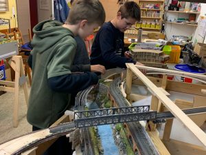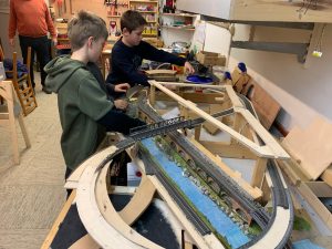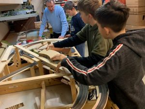 Als erstes wurde wieder ein geschlossener Gleisplan aufgebaut und unter Anleitung der erfahrenen Modellbahner neu verkabelt. In den nächsten Wochen geht es an den kreativen Neuaufbau der Anlage.
